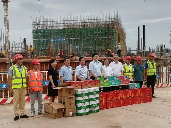 導讀:6月5日下午,贛州市委常委、市政府常務副市長胡劍飛到贛州經開區(qū)文化藝術中心(A、C地塊)建設項目部開展端午“兩不停”調研工作,向堅守在一線的工作人員發(fā)放防暑降溫用品。省蘇區(qū)辦副主任、市蘇區(qū)辦主任、市發(fā)改委主任盧述銀,市政府副秘書長、辦公室主任溫江濤,市工信局局長宋鵬陪同調研。
