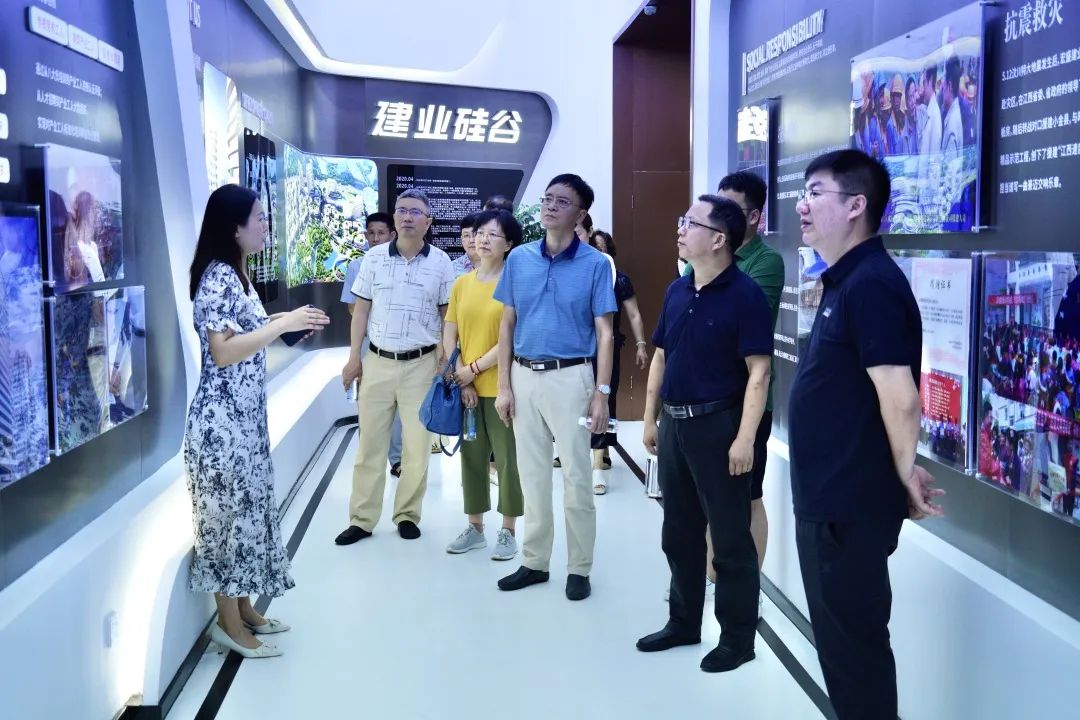 在建業(yè)硅谷總部經(jīng)濟園展廳,副總經(jīng)理趙慧詳細(xì)介紹了建筑科技產(chǎn)業(yè)園品牌定位及運營情況,并陪同觀看了宣傳視頻和展墻上相關(guān)板塊的介紹。隨后,黎洪陽書記等人還參觀了園區(qū)黨群活動室、工會辦公室、工會活動中心及職工之家。