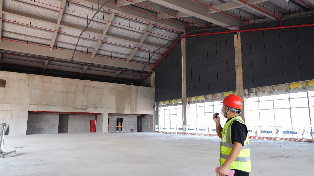 隨后,由引導(dǎo)員以在線直播的形式帶領(lǐng)大家參觀本次觀摩會(huì)現(xiàn)場(chǎng)。觀摩線路沿途布設(shè)黨建長(zhǎng)廊、標(biāo)準(zhǔn)養(yǎng)護(hù)室、智慧工地展區(qū)、實(shí)體樣板區(qū)、圓柱工藝展區(qū)、施工機(jī)具及新工藝材料展示等。觀摩過(guò)程中,引導(dǎo)員為大家詳細(xì)介紹了贛州經(jīng)濟(jì)技術(shù)開(kāi)發(fā)區(qū)文化藝術(shù)中心(A、C地塊)建設(shè)項(xiàng)目中的亮點(diǎn)技術(shù):弧形木模、BIM管綜調(diào)整、弧形梁GPS坐標(biāo)定點(diǎn)放樣、種植層面防水施工……