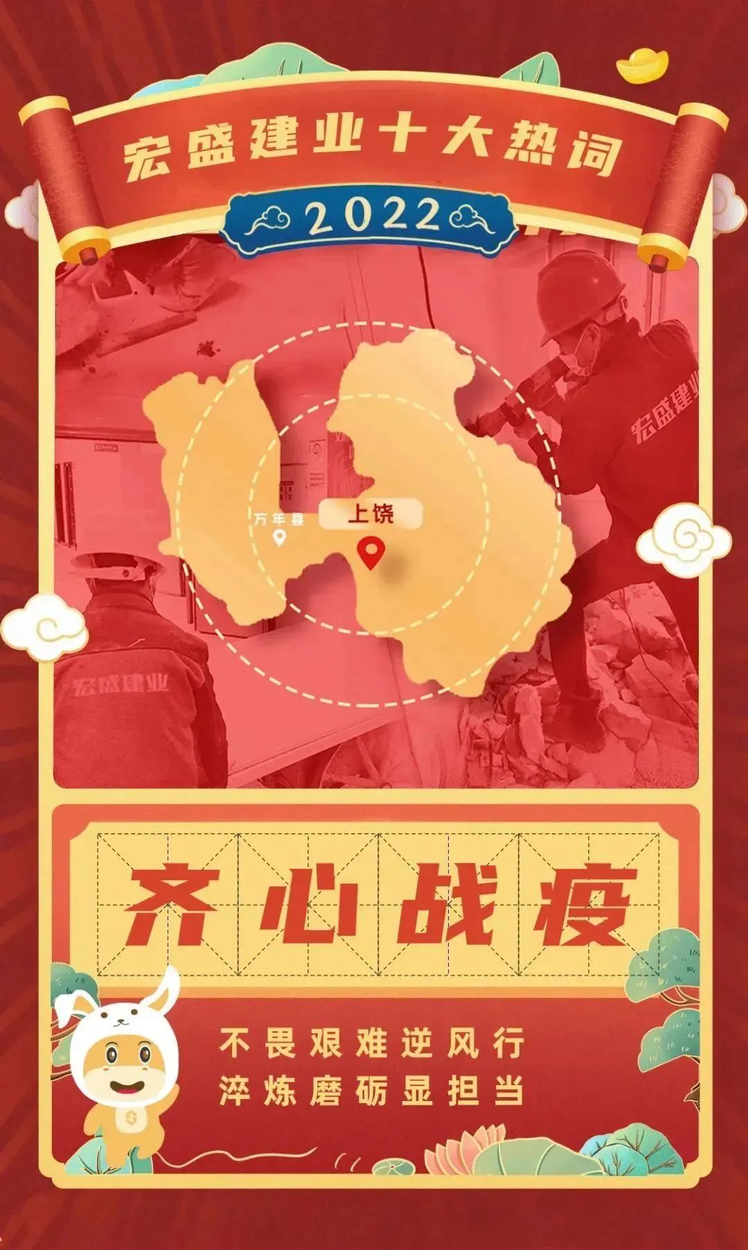 這一年,在抗擊新冠肺炎疫情的斗爭中,廣大宏盛人挺身而出,參建萬年方艙醫(yī)院,投身抗擊疫情的前線。他們以堅(jiān)定果敢的勇氣和堅(jiān)韌不拔的決心,同時間賽跑,與病魔較量,展現(xiàn)了宏盛人面對生死考驗(yàn)時堅(jiān)守崗位、不畏艱險的優(yōu)良品質(zhì)。