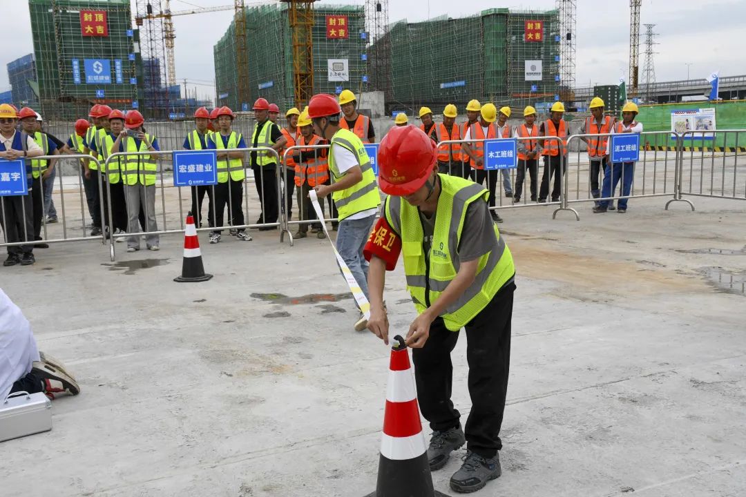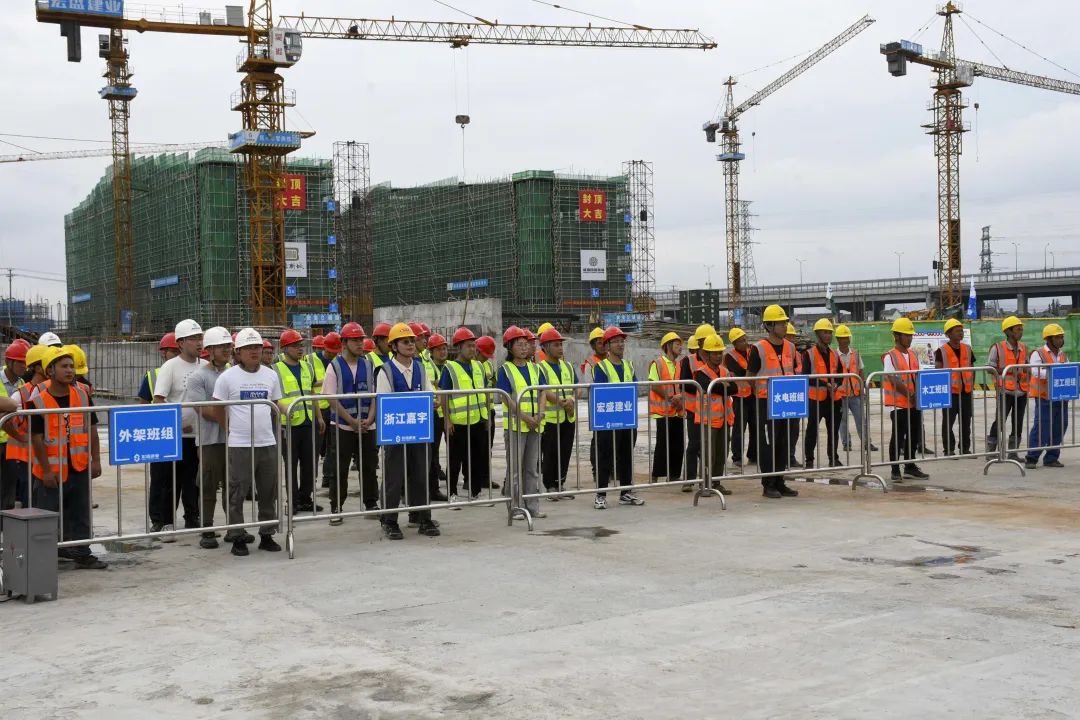 時值夏季,持續(xù)的高溫天氣給奮戰(zhàn)在一線的建筑工人帶來嚴峻考驗。為確保杜甫中學項目的安全生產工作順利開展,進一步提升全員應對突發(fā)事故的應變能力,6月20日,杜甫中學項目舉行事故應急救援演練,杭州良渚新城城建投資有限公司項目負責人凌錦華、杭州城投良渚新城開發(fā)有限公司項目負責人李洋、浙江嘉宇工程管理有限公司總監(jiān)理工程師楊國盛、良渚區(qū)域微型消防站站長鄧成勇、杭州華方醫(yī)院院長、主任醫(yī)師吳學華出席演練活動,集團副董事長、總裁周金旺,監(jiān)事長、審計中心總經(jīng)理成承等核心高管代表一同出席,各參會代表與項目各方代表一同列隊參加。