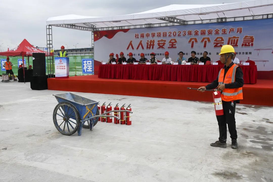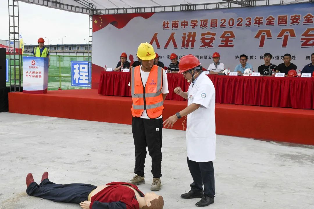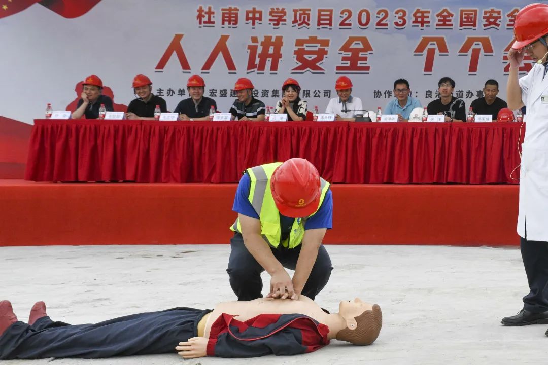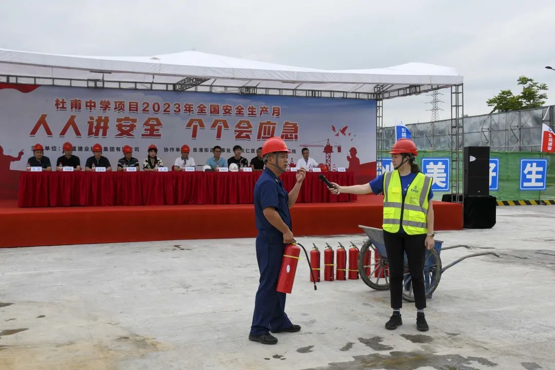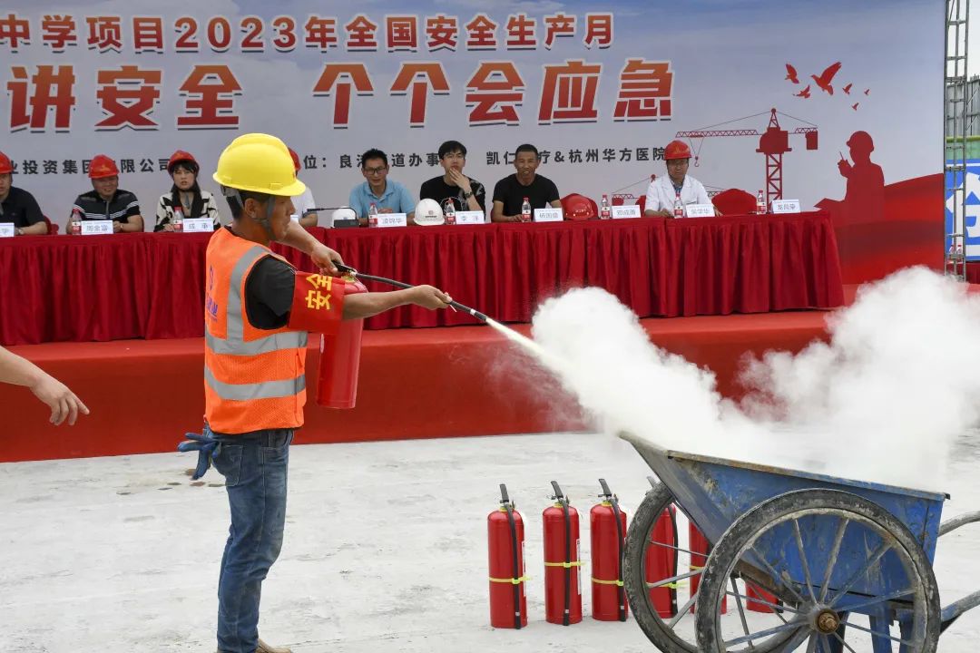 導讀:時值夏季,持續(xù)的高溫天氣給奮戰(zhàn)在一線的建筑工人帶來嚴峻考驗。為確保杜甫中學項目的安全生產工作順利開展,進一步提升全員應對突發(fā)事故的應變能力,6月20日,杜甫中學項目舉行事故應急救援演練,杭州良渚新城城建投資有限公司項目負責人凌錦華、杭州城投良渚新城開發(fā)有限公司項目負責人李洋、浙江嘉宇工程管理有限公司總監(jiān)理工程師楊國盛、良渚區(qū)域微型消防站站長鄧成勇、杭州華方醫(yī)院院長、主任醫(yī)師吳學華出席演練活動,集團副董事長、總裁周金旺,監(jiān)事長、審計中心總經(jīng)理成承等核心高管代表一同出席,各參會代表與項目各方代表一同