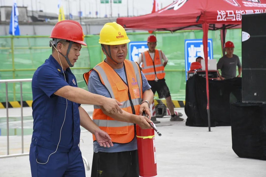演練共分三個環(huán)節(jié),分別是消防滅火器使用培訓、常用醫(yī)療應急處理培訓和高溫中暑應急演練。