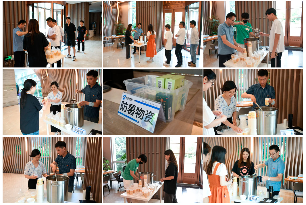 此外,集團大樓一樓前臺常設防暑物資供應點,高溫天熱心的黨員同事還擔任“清涼大使”,為大家提供清爽宜人的消暑湯。為踐行低碳環(huán)保的理念,不少同事自帶水杯,以減少一次性用品的消耗。