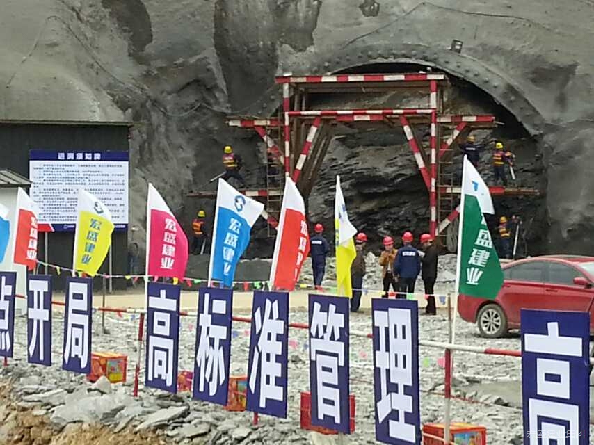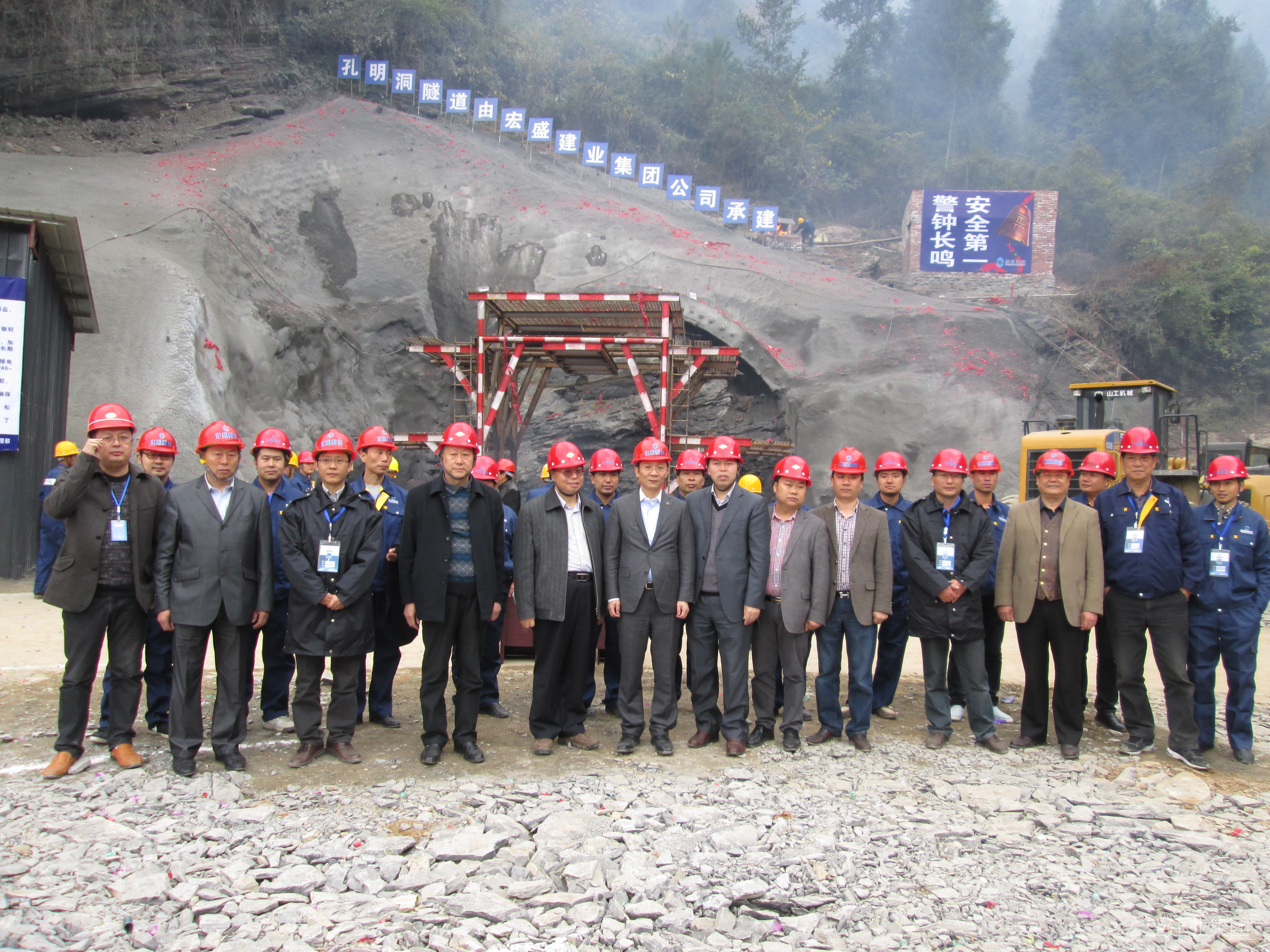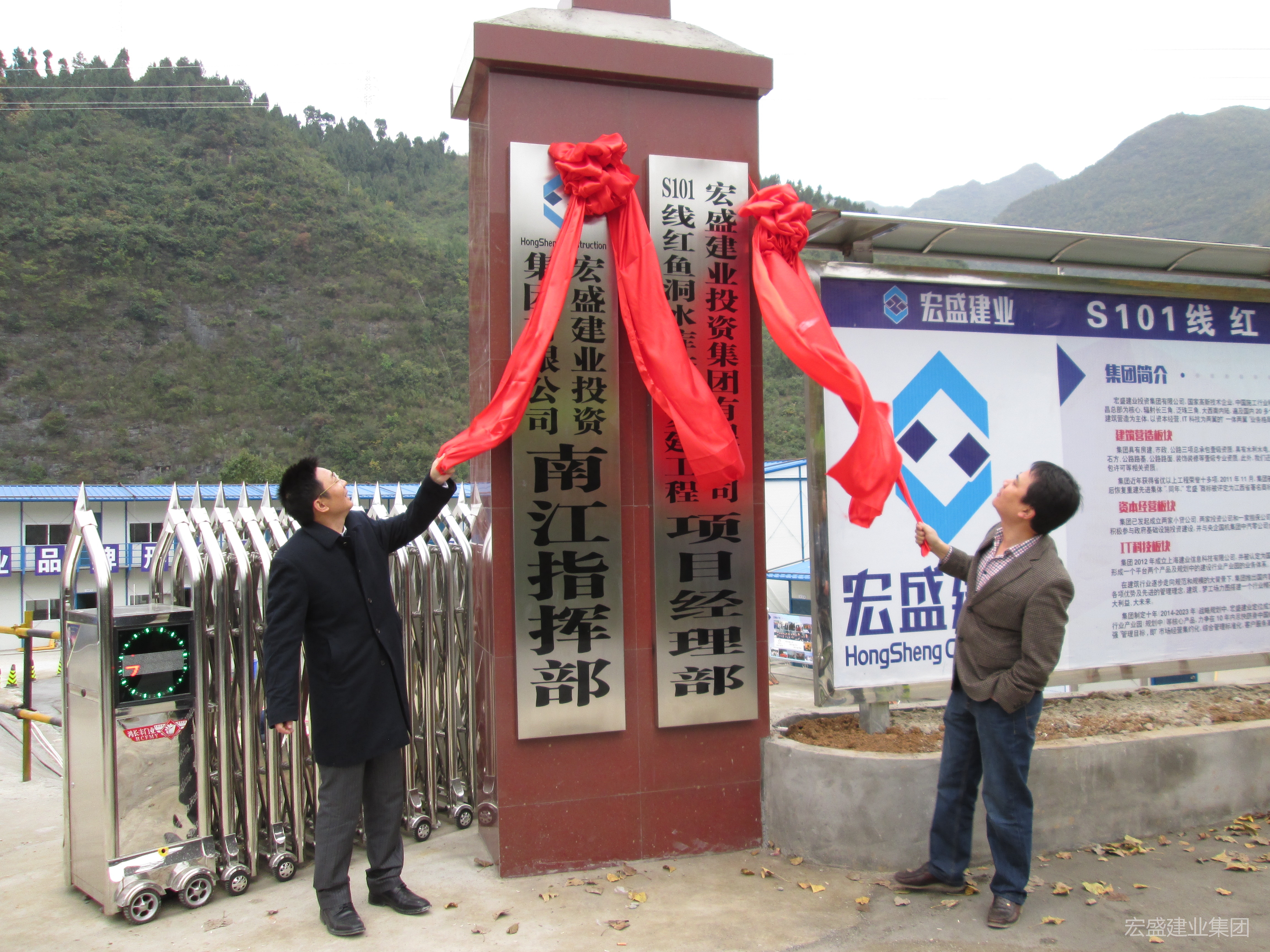 2014年11月12日,“宏盛建業(yè)投資集團有限公司南江指揮部”及“S101線紅魚洞水庫淹沒復建工程項目部”正式舉行了揭牌儀式,集團公司董事長與項目總經(jīng)理萬怡連親臨現(xiàn)場并共同揭牌、剪彩。揭牌儀式之后,孔明洞隧道也舉行了開工典禮,正式開啟隧道掘進,也標志著S101線紅魚洞水庫淹沒復建工程進入了全面施工階段。