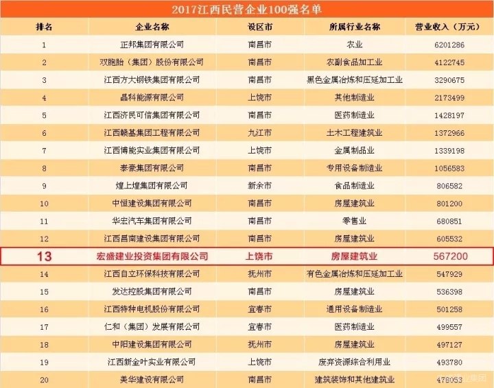 宏盛建業(yè)集團(tuán)榮膺“2017江西民營(yíng)企業(yè)100強(qiáng)”企業(yè)