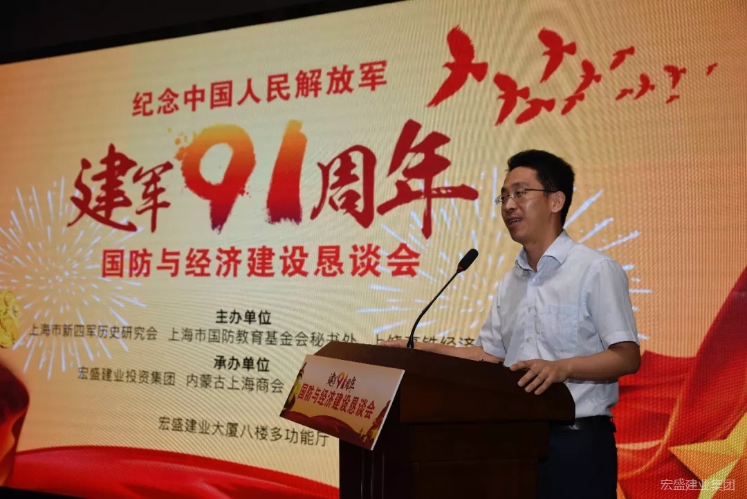 7月25日下午,由上海市國防教育辦公室指導,上海市新四軍歷史研究會、上海市國防教育基金會秘書處、上饒市高鐵經濟試驗區(qū)等單位主辦,宏盛建業(yè)投資集團等承辦的“慶祝中國人民解放軍建軍91周年---國防與經濟建設懇談會”在集團上??偛堪藰桥e行,來自四十二家商協(xié)會秘書長參加、國防教育先進單位代表100多人出席活動。
