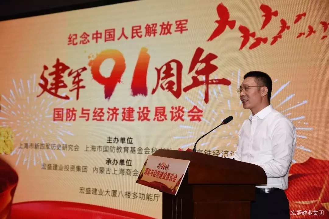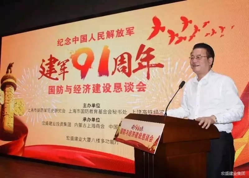 7月25日下午,由上海市國防教育辦公室指導(dǎo),上海市新四軍歷史研究會(huì)、上海市國防教育基金會(huì)秘書處、上饒市高鐵經(jīng)濟(jì)試驗(yàn)區(qū)等單位主辦,宏盛建業(yè)投資集團(tuán)等承辦的“慶祝中國人民解放軍建軍91周年---國防與經(jīng)濟(jì)建設(shè)懇談會(huì)”在集團(tuán)上海總部八樓舉行,來自四十二家商協(xié)會(huì)秘書長參加、國防教育先進(jìn)單位代表100多人出席活動(dòng)。