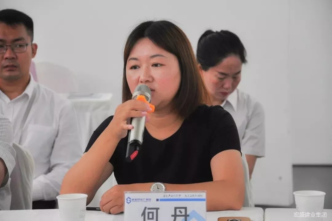 在建筑科技產(chǎn)業(yè)園,調(diào)研組一行先后察看了項目建設(shè)現(xiàn)場和產(chǎn)業(yè)園最具有代表性的源·建筑科技文化館,并組織召開相關(guān)人員座談會。宏盛建業(yè)投資集團執(zhí)行總裁周金旺、產(chǎn)業(yè)園執(zhí)行總裁何丹分別就企業(yè)發(fā)展與項目建設(shè)進展情況,和產(chǎn)業(yè)園招商運營中需要解決的有關(guān)問題進行了匯報。