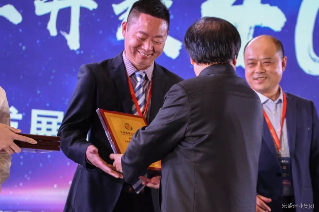 宏盛建業(yè)集團(tuán)總裁陳明山作為代表接牌匾