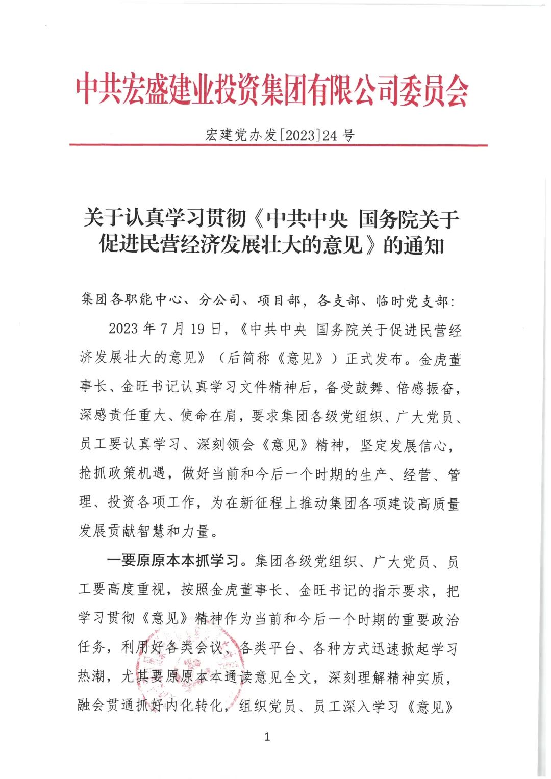 2023年7月19日,《中共中央 國務(wù)院關(guān)于促進民營經(jīng)濟發(fā)展壯大的意見》(后簡稱《意見》)正式發(fā)布。金虎董事長、金旺書記認真學(xué)習(xí)文件精神后,備受鼓舞、倍感振奮,深感責(zé)任重大、使命在肩,要求集團各級黨組織、廣大黨員、員工要認真學(xué)習(xí)、深刻領(lǐng)會《意見》精神,堅定發(fā)展信心,搶抓政策機遇,做好當前和今后一個時期的生產(chǎn)、經(jīng)營、管理、投資各項工作,為在新征程上推動集團各項建設(shè)高質(zhì)量發(fā)展貢獻智慧和力量。