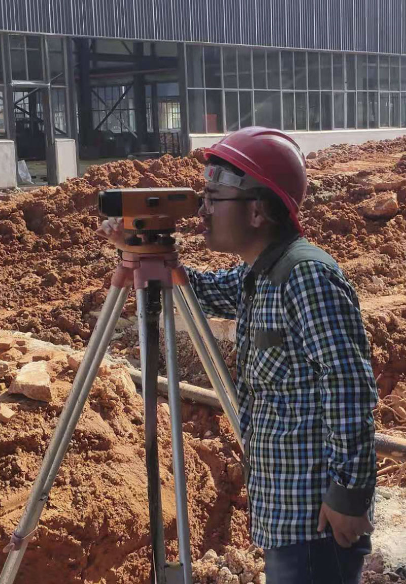 他叫盧燦紅,90后小伙,個子不高,皮膚黝黑,干起活來身體里面就像裝了個永動機,他是一名項目測量員,架設(shè)上設(shè)備后,本能的操作著手中的水準儀和全站儀,核對手中的數(shù)據(jù),反復動作做得行云流水,數(shù)據(jù)準不準確,他一眼便能看出。