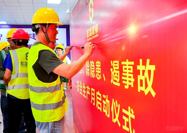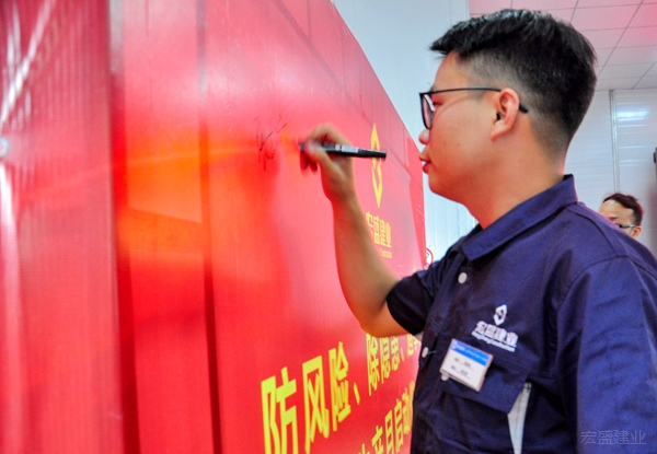 啟動(dòng)儀式上,大家爭(zhēng)相在背景墻上簽下名字,紛紛表態(tài),在公司“鑄精品工程,創(chuàng)美好生活”的核心價(jià)值觀引領(lǐng)下,把安全生產(chǎn)擺在首位,真抓實(shí)干、嚴(yán)格規(guī)范、不斷優(yōu)化、確保安全。以本次啟動(dòng)儀式為起點(diǎn),宏盛建業(yè)投資集團(tuán)全面掀起一股項(xiàng)目創(chuàng)優(yōu)、爭(zhēng)做安全生產(chǎn)標(biāo)兵的潮流。