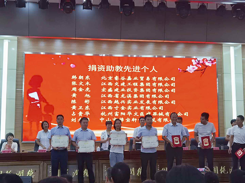 9月10日,在上饒市貞白中學召開的廣豐區(qū)教育工作大會上,上饒市廣豐區(qū)委、區(qū)政府授予宏盛建業(yè)投資集團董事長周金虎“捐資助教先進個人”榮譽。