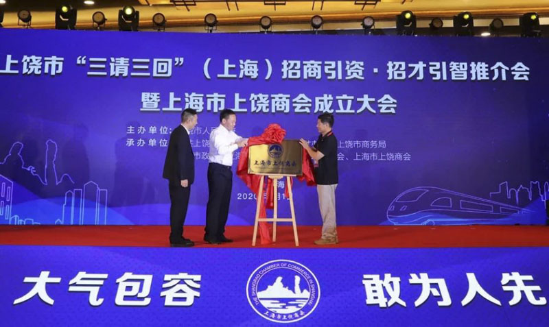 上饒市委副書記、市長陳云,上海警備區(qū)原司令員彭水根將軍,集團董事長周金虎共同為上海市上饒商會揭牌,開啟了上海市上饒商會里程碑性的歷史時刻。