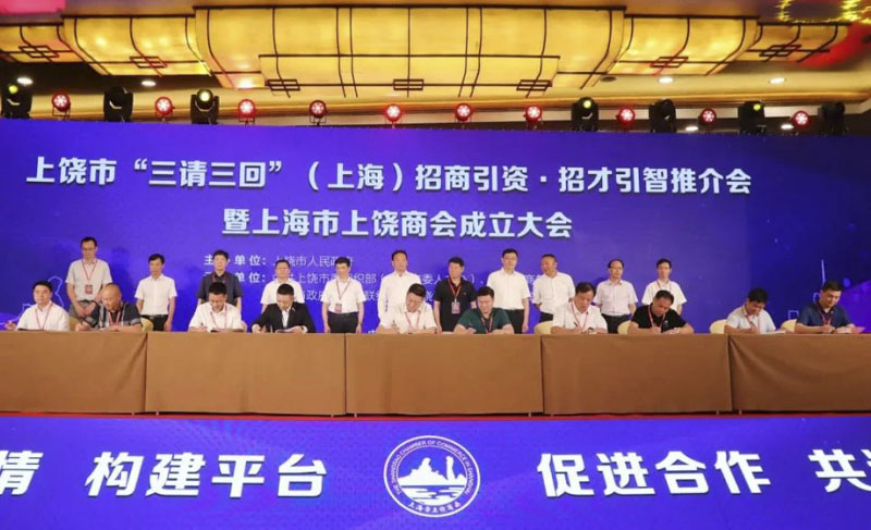 8月1日下午,上饒市“三請三回”(上海)招商引資·招才引智推介會暨上海市上饒商會成立大會在上海華亭賓館隆重舉行。集團董事長周金虎當選上海市上饒商會會長,并在推介會上與上饒市政府簽訂擬投資40億元落戶上饒經(jīng)開區(qū)的數(shù)智電子科技園項目。