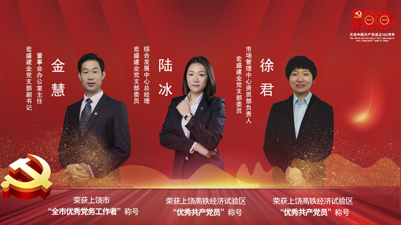 Guide:宏盛建業(yè)黨支部副書記、董事會辦公室主任金慧榮獲“上饒市優(yōu)秀黨務(wù)工作者”稱號,宏盛建業(yè)黨支部委員、綜合發(fā)展中心總經(jīng)理陸冰和宏盛建業(yè)黨支部委員、市場管理中心資質(zhì)部負(fù)責(zé)人徐君榮獲高鐵經(jīng)濟(jì)試驗(yàn)區(qū)“優(yōu)秀共產(chǎn)黨員”稱號。