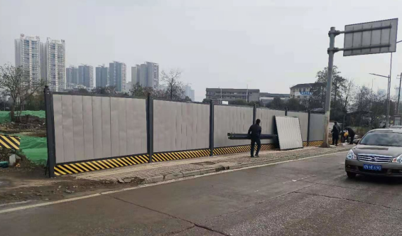 工人安裝拆遷區(qū)域圍擋