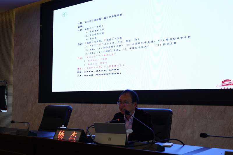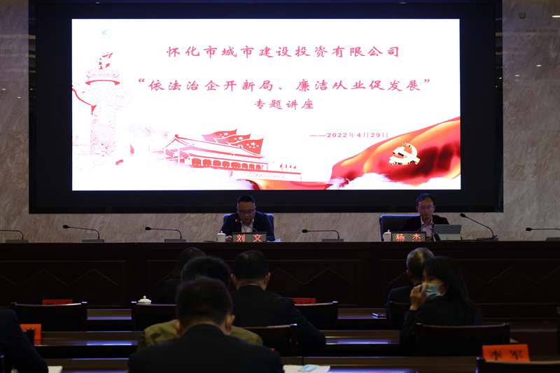 為推動公司“清廉國企”建設,加強依法治企能力,強化全員廉潔從業(yè)意識,2022年4月29日上午,懷化市城市建設投資有限公司舉辦了“依法治企開新局,廉潔從業(yè)促發(fā)展”專題教育講座,公司黨委委員、紀檢書記、監(jiān)察專員劉文主持講座。