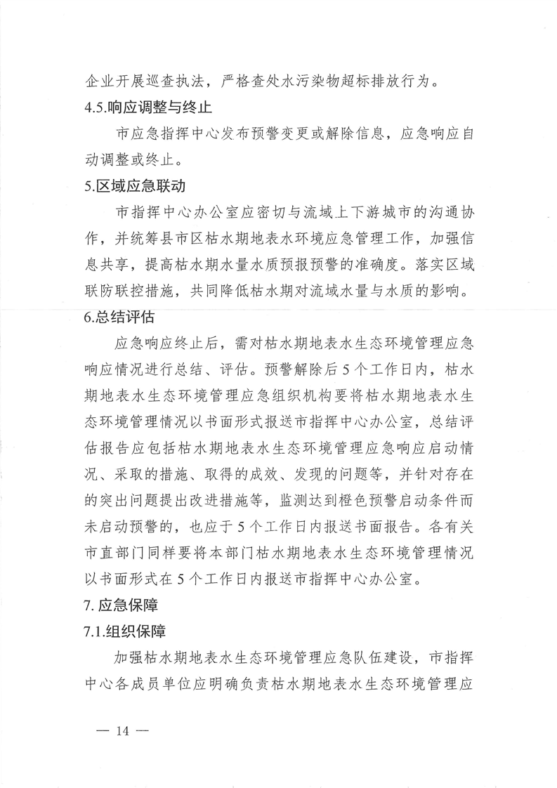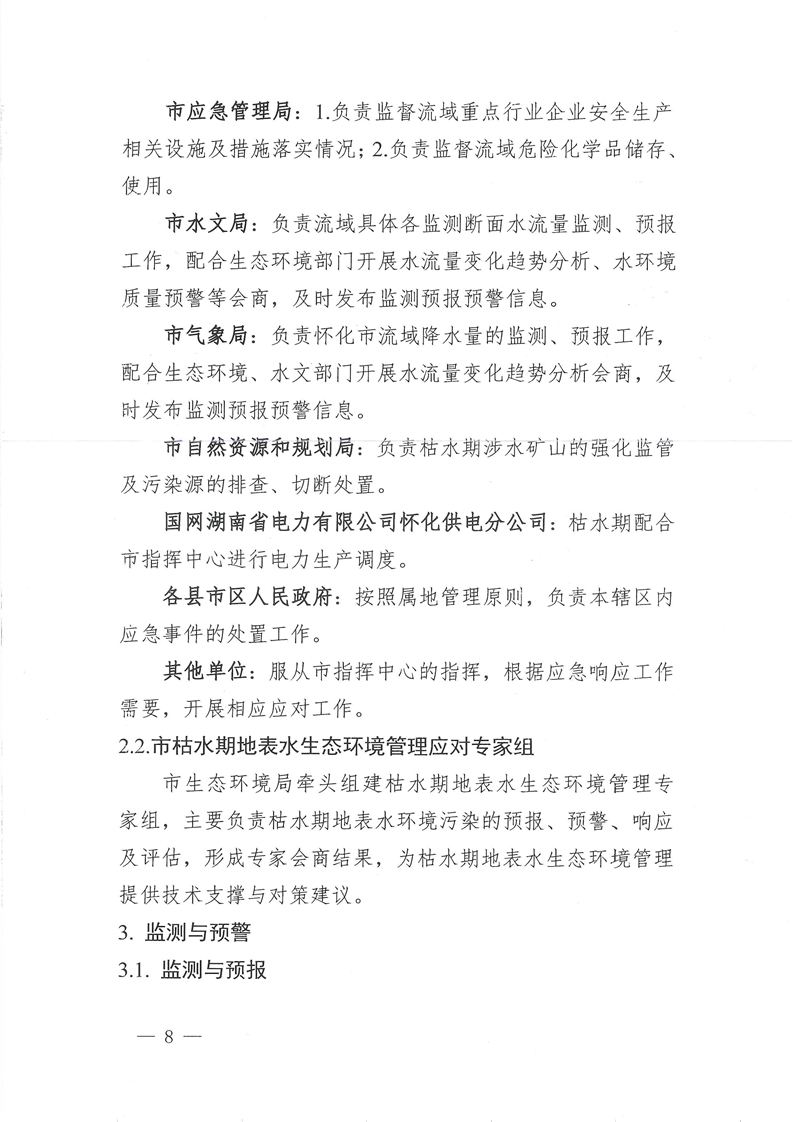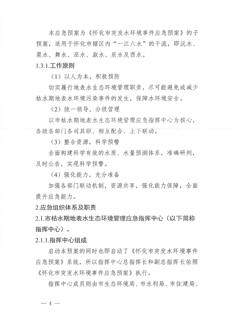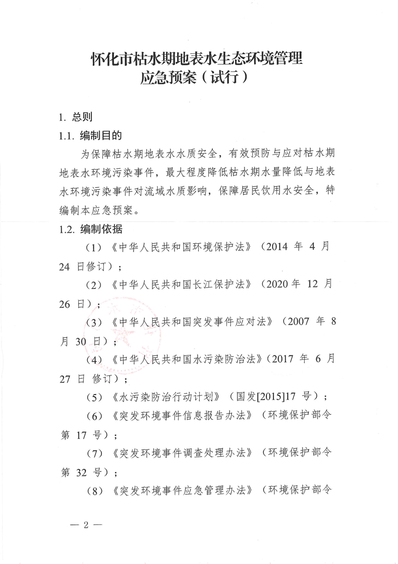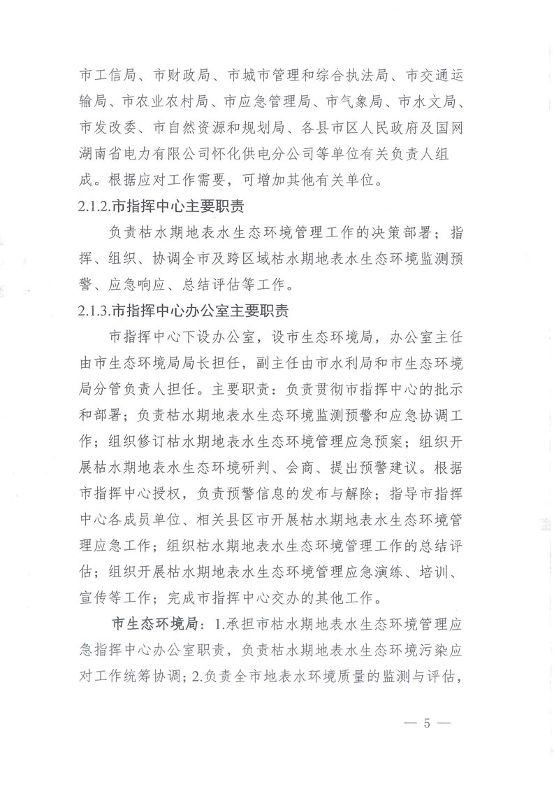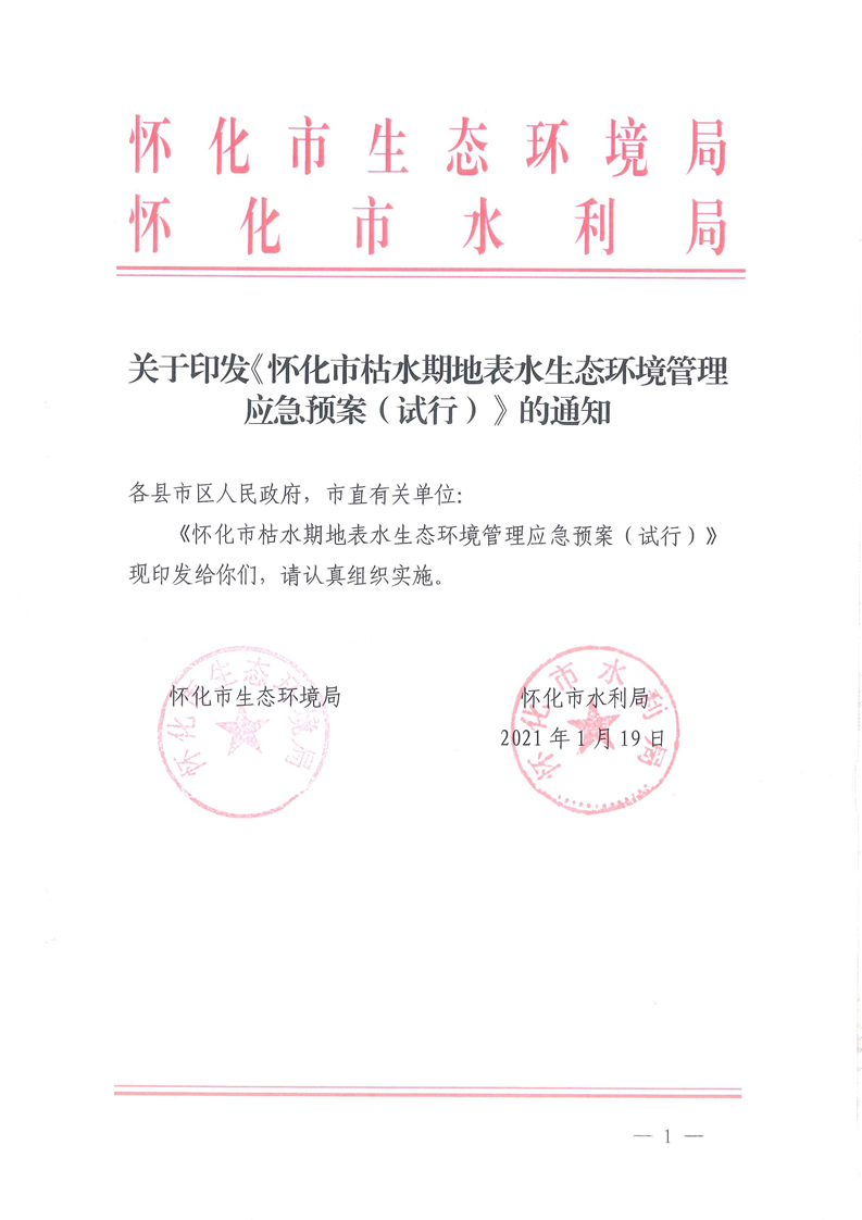 關(guān)于印發(fā)《懷化市枯水期地表水生態(tài)環(huán)境管理應(yīng)急預(yù)案(試行)》的通知