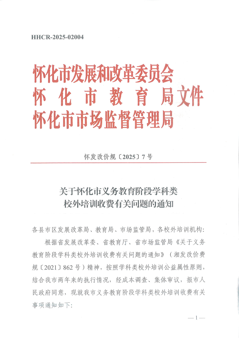 文號:懷發(fā)改價規(guī)〔2025〕7號
