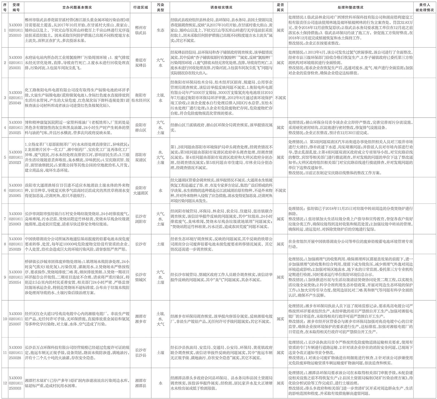 2018年11月29日,我省收到中央第四生態(tài)環(huán)境保護督察組第三十批轉(zhuǎn)辦重點信訪件12件,按要求交由相關(guān)市辦理,現(xiàn)將辦理情況予以公開。