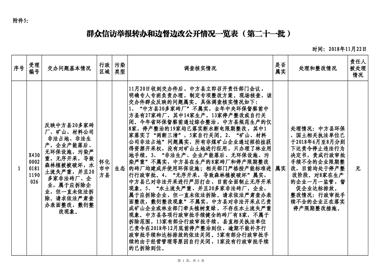第二十三期 懷化市配合中央生態(tài)環(huán)境督察回頭看工作專報