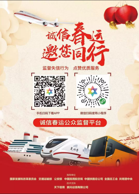 從2017年開始,國(guó)家發(fā)展改革委會(huì)同公安部、交通運(yùn)輸部、民航局、鐵路總公司等部門和單位建立了“誠(chéng)信春運(yùn)公眾監(jiān)督平臺(tái)”,鼓勵(lì)旅客隨時(shí)隨地監(jiān)督春運(yùn)中的失信和不文明行為,點(diǎn)贊優(yōu)質(zhì)服務(wù)和好人好事,取得積極成效。