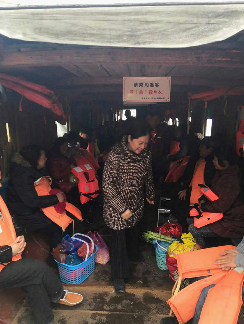 春運辦副組長胡香蓮督促乘客穿(拿)救生衣
