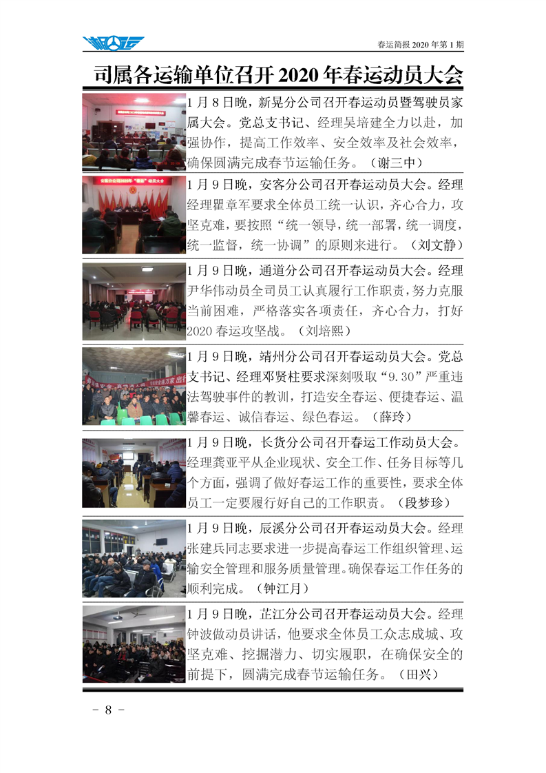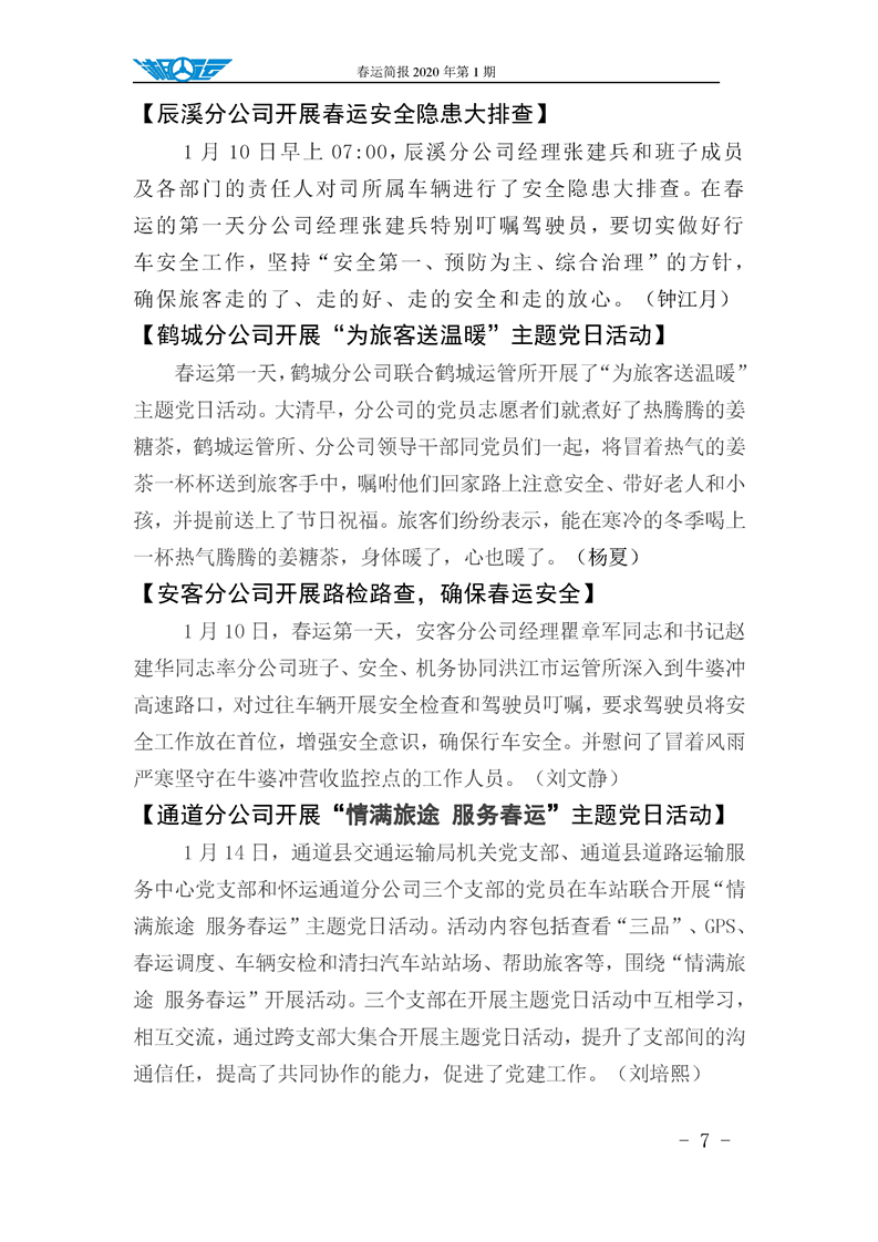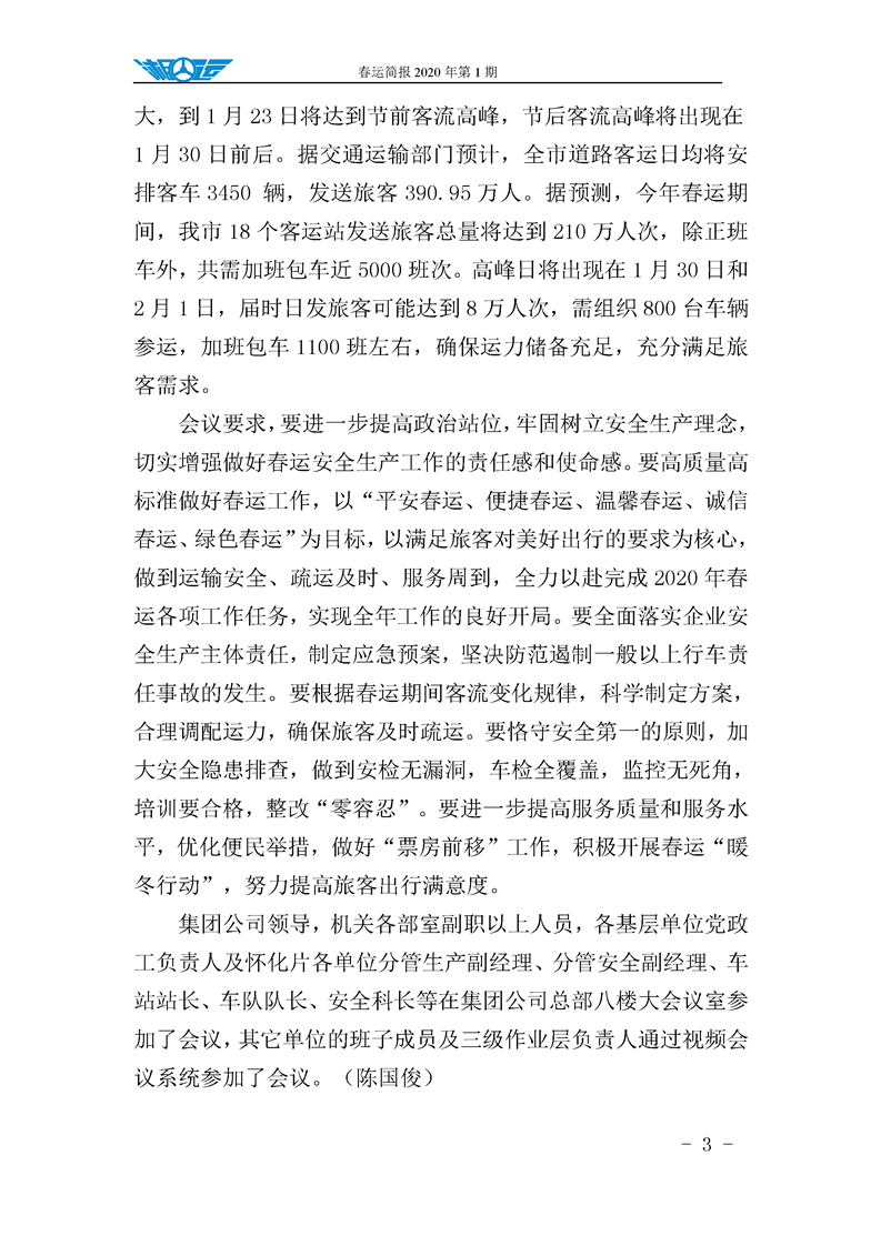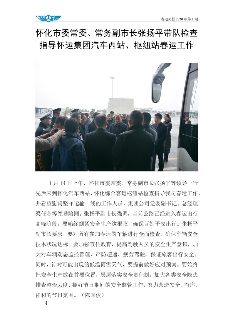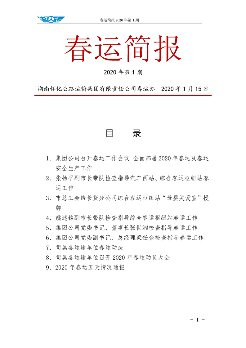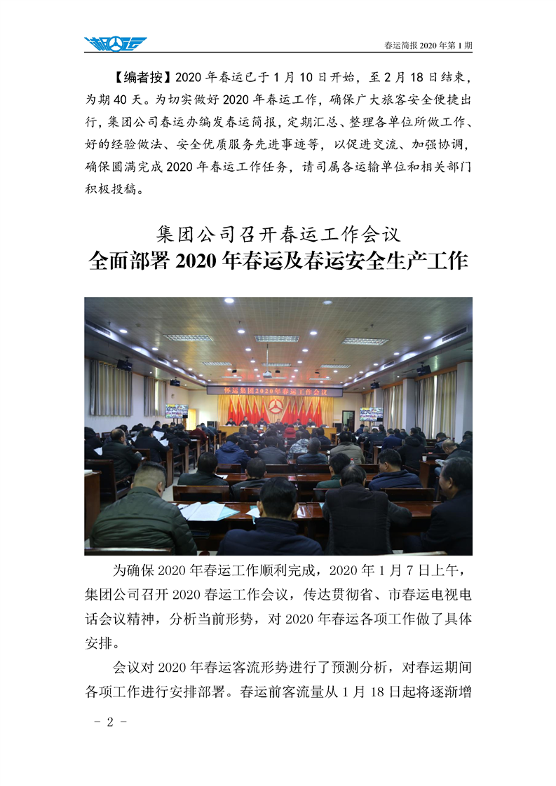 懷運(yùn)集團(tuán)春運(yùn)簡(jiǎn)報(bào) 2020 年第 1 期