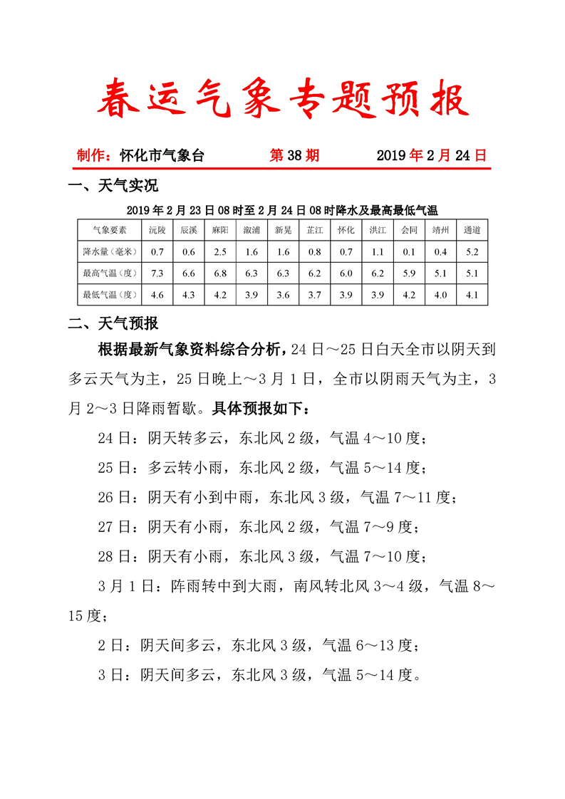 春運氣象專題預(yù)報(第38期)