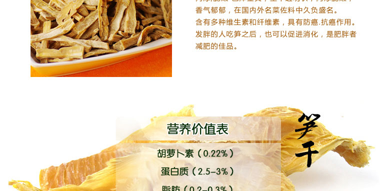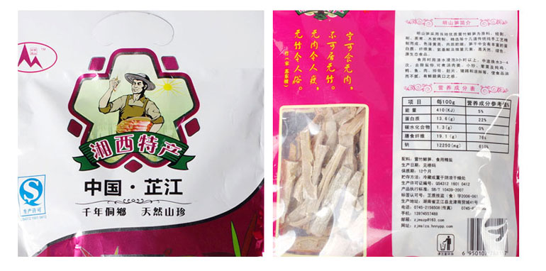 品牌: 明山筍 包裝方式: 袋裝 保質(zhì)期: 一年 凈重: 238g 生產(chǎn)許可證: QS4312 1601 0412,QS4312 1601 0412 產(chǎn)品標(biāo)準(zhǔn)號(hào): SB/T 10439-2007,SB/T 10439-2007 配料表: 雷竹鮮筍、食用精鹽,雷竹鮮筍、食用精鹽 儲(chǔ)藏方法: 冷藏或置于陰涼干燥處,冷藏或置于陰涼干燥處 食品添加劑: 無(wú) 產(chǎn)地: 湖南省 懷化市 芷江侗族自治縣 |