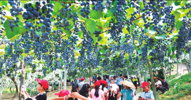 2013年9月16日,市內外賓客在中方縣桐木鎮(zhèn)大松坡村葡萄園采摘葡萄。 (陸曉鵬 攝)