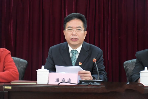 縣委副書(shū)記、縣長(zhǎng)、縣委“不忘初心、牢記使命”主題教育領(lǐng)導(dǎo)小組副組長(zhǎng)謝商成主持會(huì)議