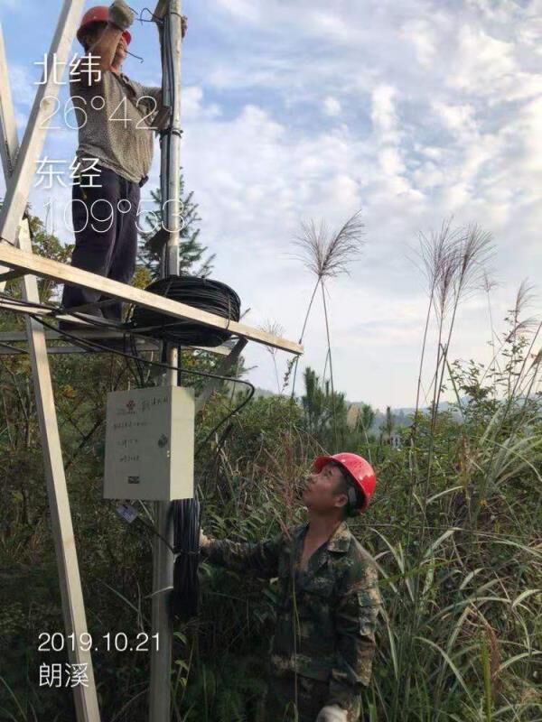 圖為10月21日,懷化聯(lián)通在靖州縣文溪鄉(xiāng)郞溪村民生工程施工現(xiàn)場進行ODF箱安裝及光纜成端