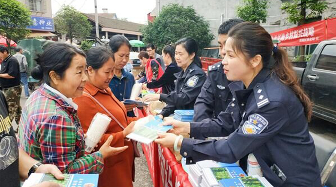 2019年5月21日,鶴城區(qū)司法局組織22 家普法責(zé)任單位來到黃金坳鎮(zhèn)開展普法宣傳活動。(周瓊黃興攝)