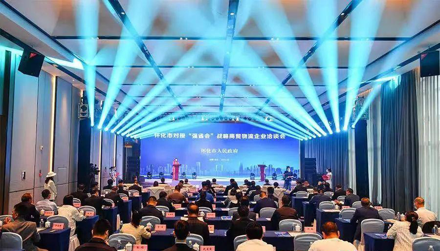 (5月13日下午,懷化市對接“強省會”戰(zhàn)略商貿(mào)物流企業(yè)洽談會在長沙舉行,對懷化國際陸港進行推介。圖源:懷化新聞網(wǎng))