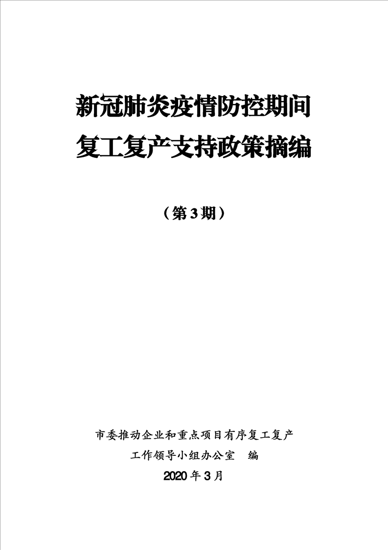 新冠肺炎疫情防控期間復工復產支持政策摘編(第3期)