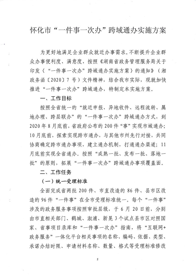 懷化市政務(wù)公開政務(wù)服務(wù)領(lǐng)導(dǎo)小組辦公室關(guān)于印發(fā)《懷化市“一件事一次辦”跨域通辦實(shí)施方案》的通知