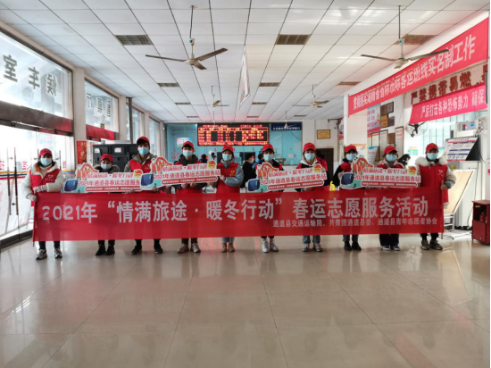 由通道縣交通運輸局、共青團通道縣委和通道縣青年志愿者協(xié)會在春運期間聯(lián)合開展的2021年“情滿旅途·暖冬行動”春運志愿服務活動,于1月28日拉開序幕。期間,縣青年志愿者協(xié)會組織青年志愿者,在城東汽車站為春運旅客、出行群眾等提供體溫監(jiān)測、人員登記、防疫知識宣傳、秩序維護、咨詢引導、便民利民、幫扶重點旅客等志愿服務。(共青團懷化市委)