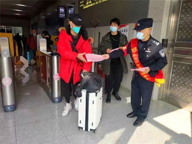 同時,宣傳民警還結(jié)合當前工作重點,在候車室、出站口、售票廳等向旅客廣泛的開展防電信網(wǎng)絡(luò)詐騙宣傳、愛車護路宣傳、疫情防控宣傳、防扒安全防范宣傳等相關(guān)知識,并給旅客發(fā)放了春運安全出行手冊,提醒旅客乘坐列車出行的需要注意的安全事項。