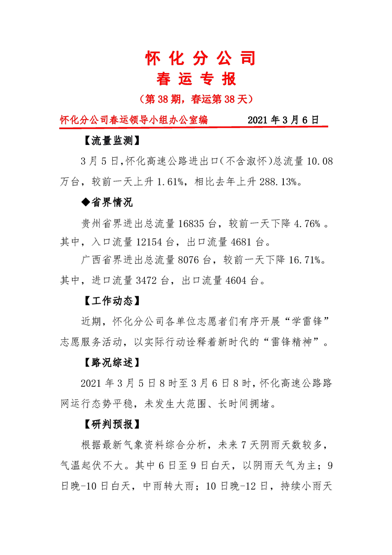 省高速集團(tuán)懷化分公司第38期春運(yùn)專報(bào)