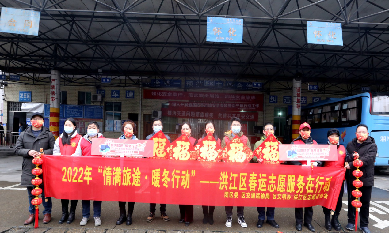 1月17日春運第一天清早,共青團洪江區(qū)委員會、洪江區(qū)交通運輸局、洪江區(qū)文明辦、洪江區(qū)志愿者協(xié)會一行10余名志愿者來到懷運集團洪江分公司開展2022年“情滿旅途·暖冬行動”洪江區(qū)春運志愿服務(wù)活動。