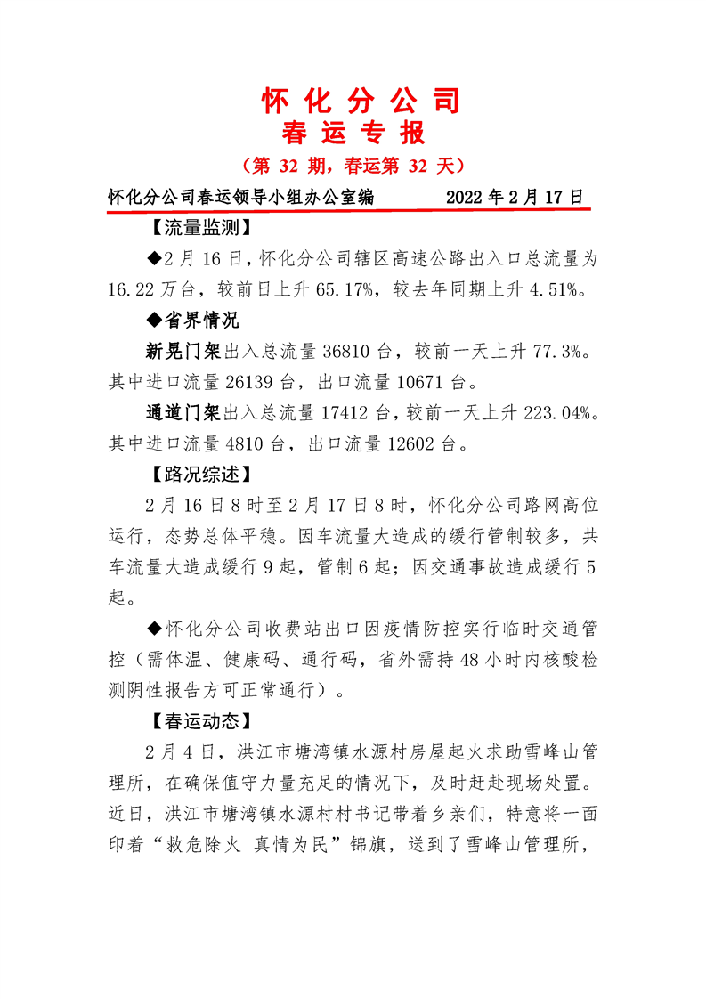 2022年高速懷化分公司第32期春運(yùn)專報(bào)