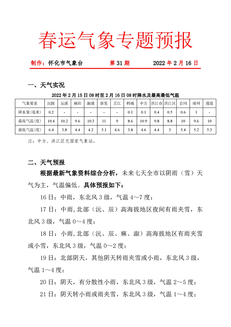 春運(yùn)氣象專題預(yù)報(bào) 第31期