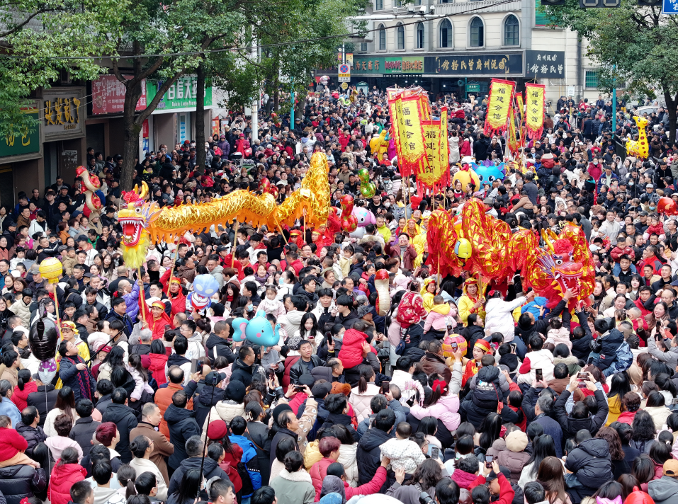 洪江區(qū)舉辦“龍騰洪江”古城巡游活動。(郭承皓/攝)
