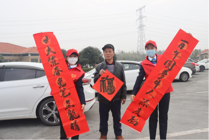 冬日暖陽,春節(jié)腳步臨近。1月11日,在G65包茂高速公路洪江服務(wù)區(qū)內(nèi),繁忙而有序。在服務(wù)區(qū)一側(cè),懷化分公司的“路燈”志愿者正在現(xiàn)場揮毫潑墨、寫福送春聯(lián),洋溢著濃濃的喜慶氛圍。活動(dòng)現(xiàn)場引來許多司乘朋友圍觀,有的直接挑選已經(jīng)寫好的“成品”,有的則根據(jù)自己的需要邀請志愿者為他們“量身定制”。一幅幅紅春聯(lián)和金燦燦的“?!弊譂M載著新春祝福,傳遞著濃濃溫情。