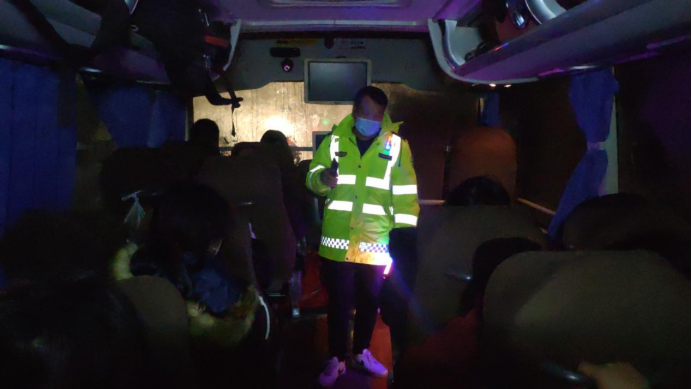 (巡查人員在轉(zhuǎn)運(yùn)車(chē)上清點(diǎn)人數(shù)。)