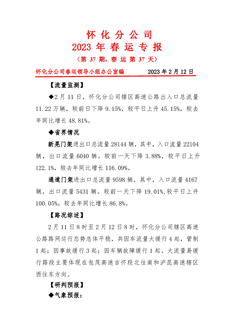 2023年懷化分公司春運(yùn)專報(bào)-第37期