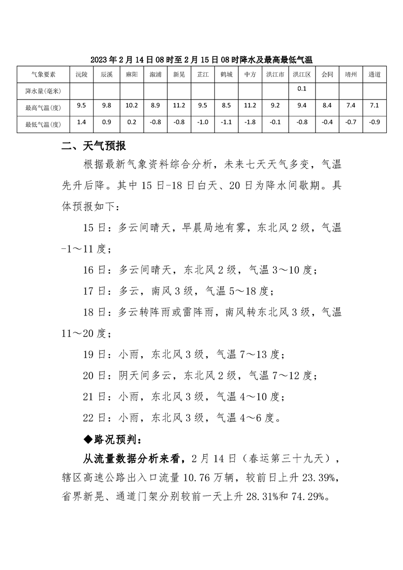 2023年懷化分公司春運專報-第40期